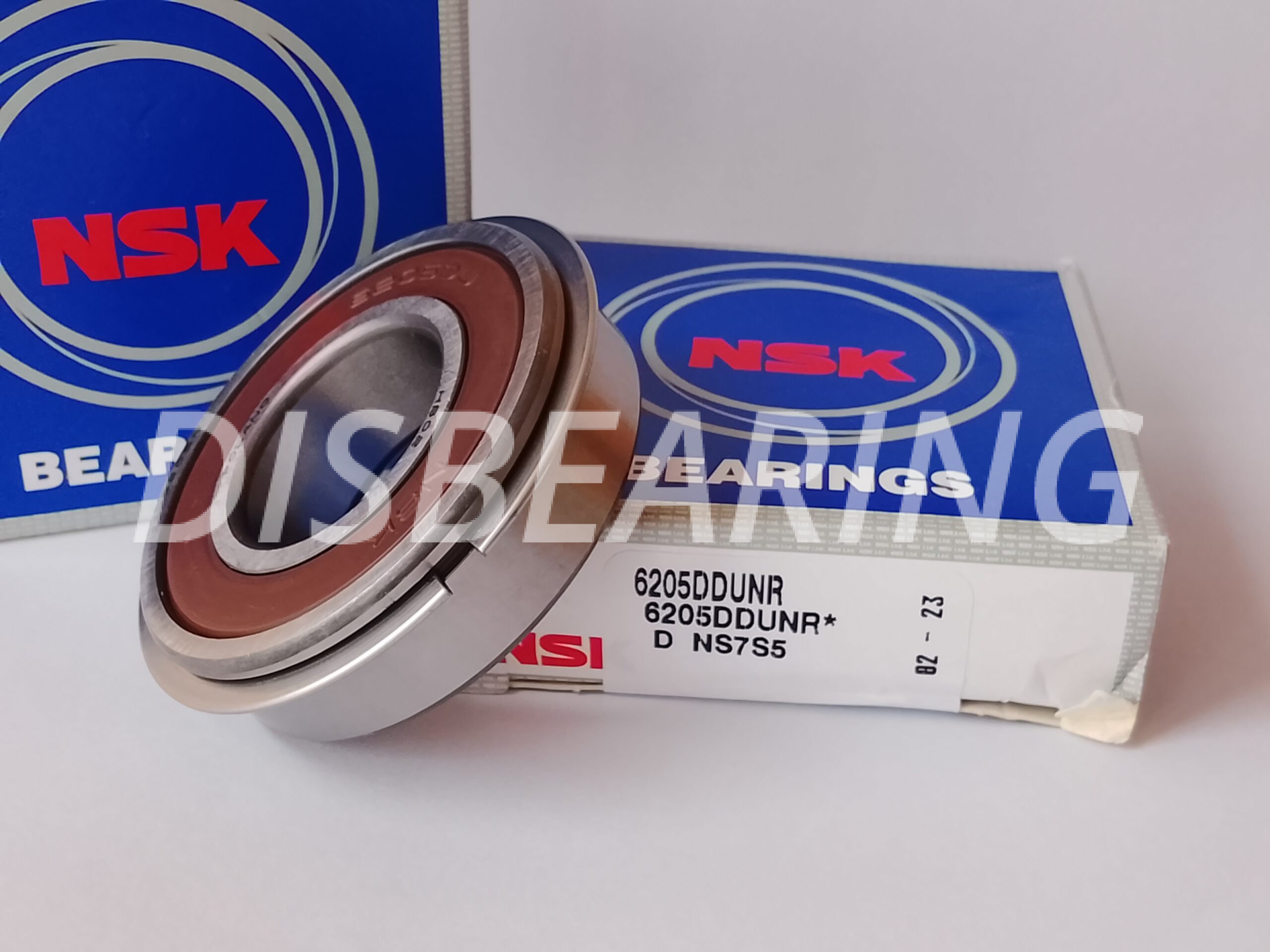 Радиальный шарикоподшипник, сепаратор из листовой стали, канавка и стопорное кольцо на внешнем диаметре, двусторонние неконтактные уплотнения 6205LLUNR